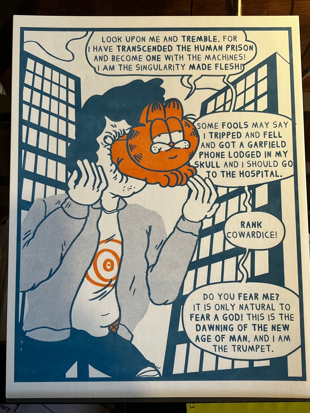 Please do not order prints and shirts in the same order. It is a huge hassle to package them together and liable to cause damage to the print, or for the packaging of the print to rip holes in the shirt packaging.
