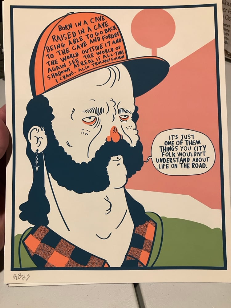 Please DO NOT order prints and shirts in the same order. It is a huge hassle to package them together and liable to cause damage to the print, or for the packaging of the print to rip holes in the shirt packaging.