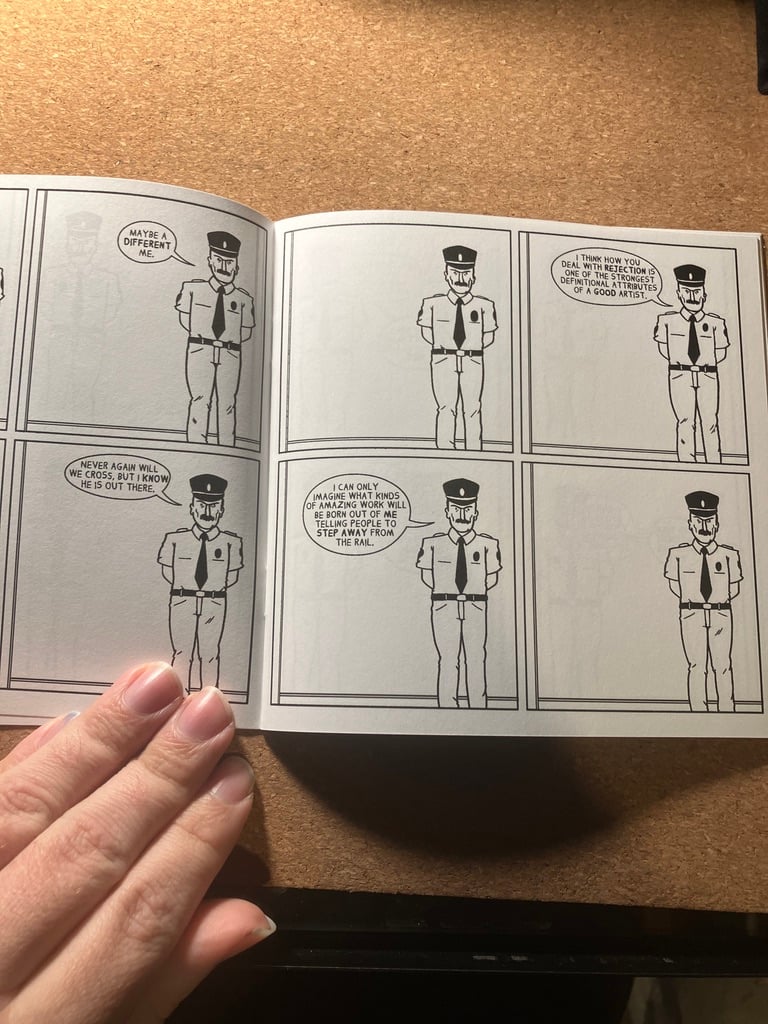 Virtually nothing happens across 20 pages. It's an exercise in patience, a lot like being a security guard. wow